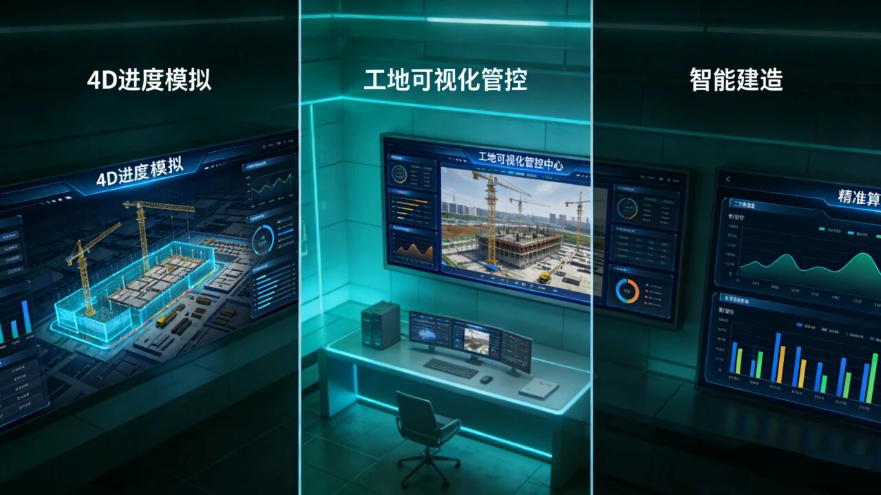 4D 进度模拟与管控:将 BIM 三维模型与施工进度计划相关联,构建 4D 施工模型,动态模拟施工全过程,直观呈现各施工工序的作业顺序、关键进度节点,优化施工整体流程,避免工序冲突,保障工期目标顺利实 现。同时,可根据施工现场实际进度实时更新模型,对比计划进度与实际进度的偏差,及时调整施工进度计划。